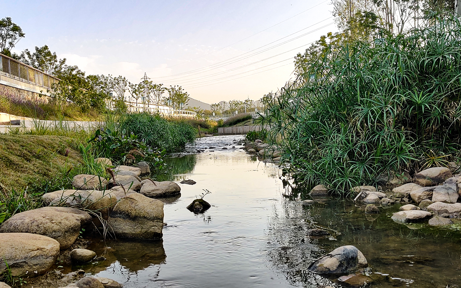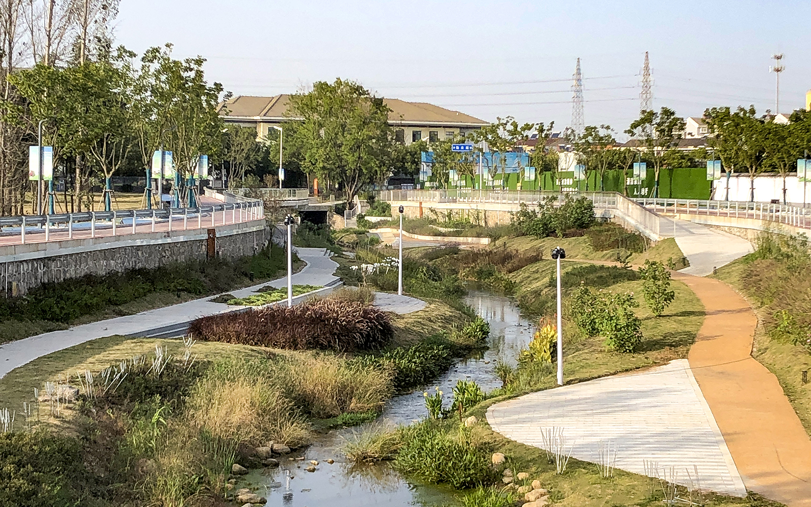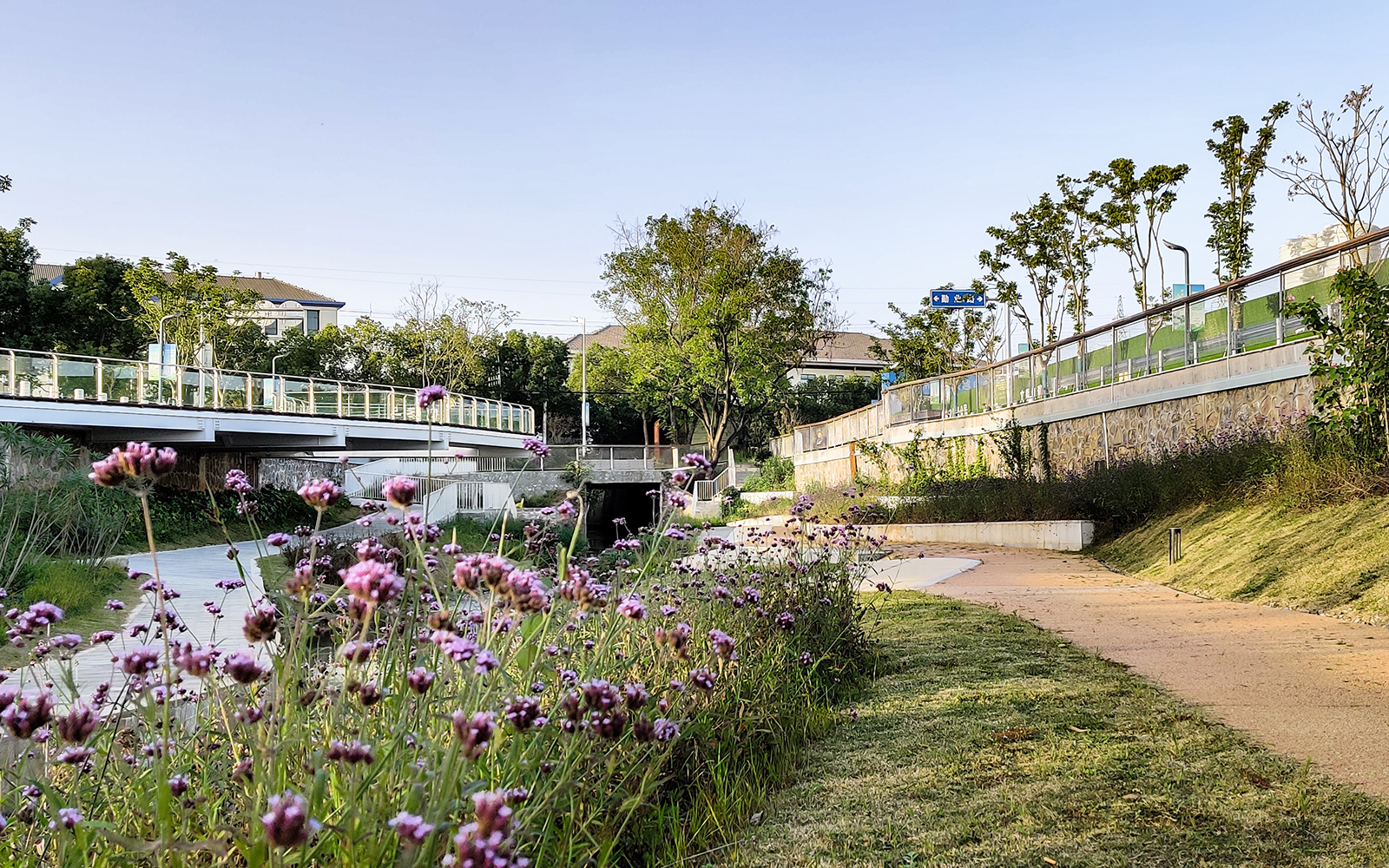 受用地規(guī)劃的限制,可供我們操作的空間是有限的,但我們不滿足于按照一個“形象工程”的標準使其僅僅達到整潔,美觀,而是希望在保障行洪安全的前提下,通過生態(tài)修復(fù)系統(tǒng)手段縫合河道兩側(cè)被割裂的空間,力求水利設(shè)施景觀化,景觀設(shè)施藝術(shù)化,重新詮釋人與水,水與城之間無界共生的關(guān)系。