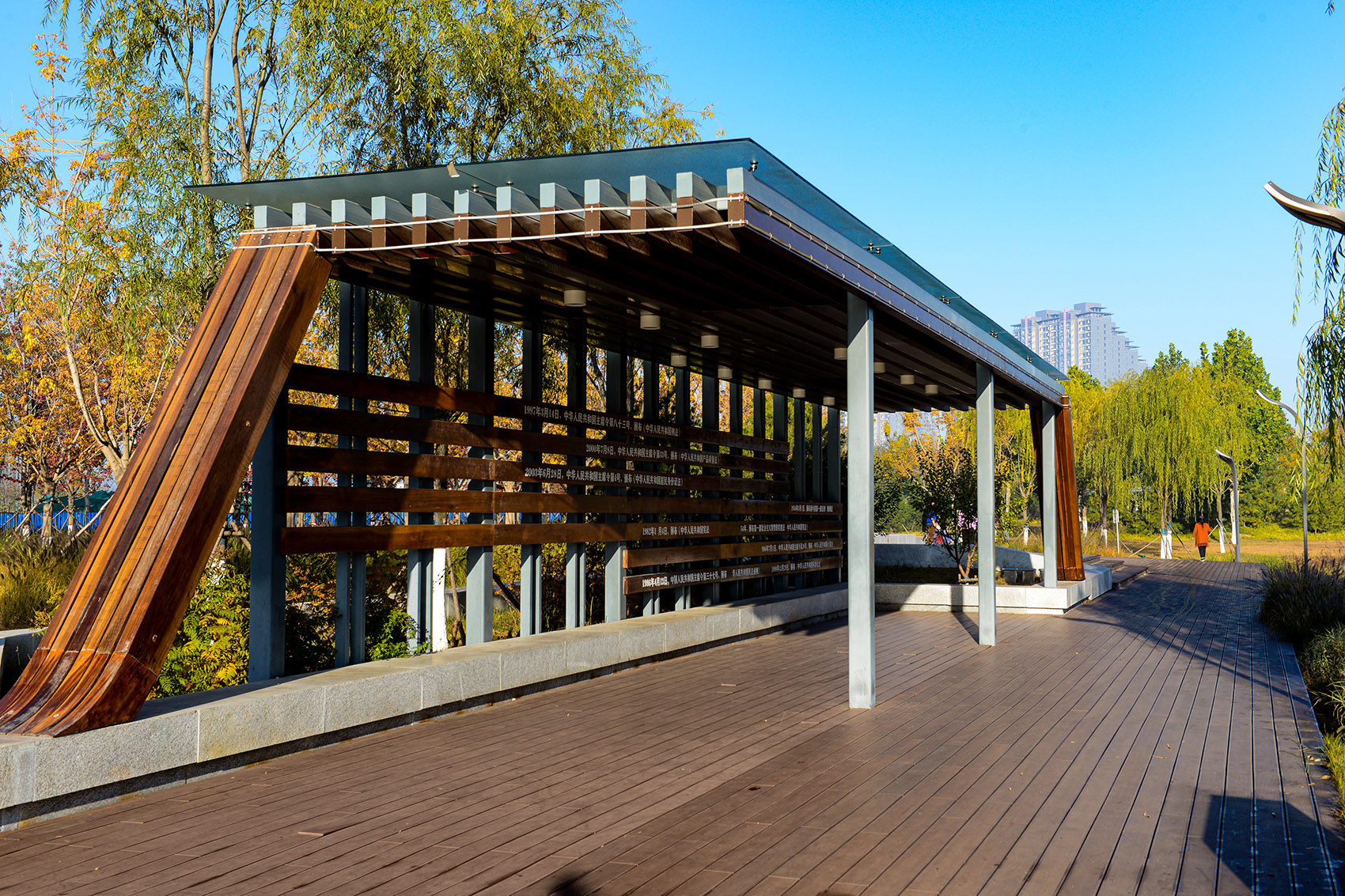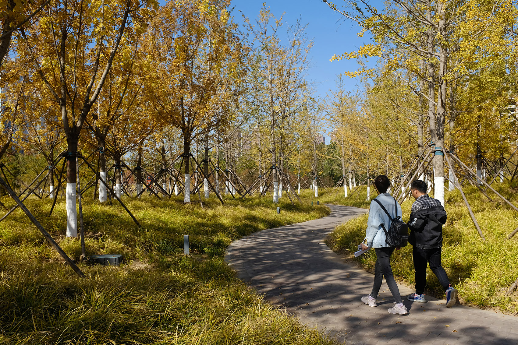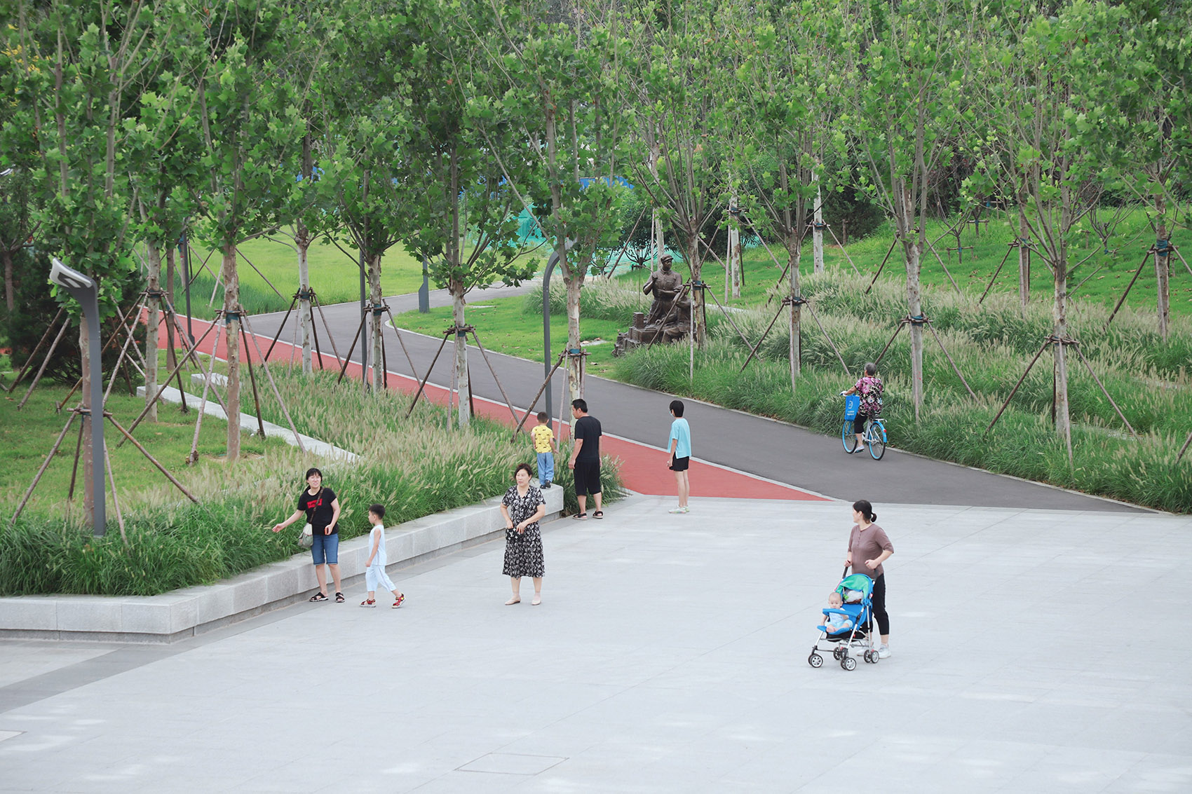 唐山軍用機(jī)場在抗震時期因為出色的救援,被中央軍委授予“抗震救災(zāi)模范場站”的榮譽(yù)稱號,現(xiàn)機(jī)場雖然已經(jīng)停用,但是在抗震救災(zāi)的歷史時期唐山人民體現(xiàn)出的堅忍不拔的抗?fàn)幘裼来?。我們借用景觀化的語言,將鮮明的場地歷史和文化融入園內(nèi),以簡單但深刻的方式再現(xiàn)記憶,使得公園成為一個溫和而敏感的細(xì)膩空間。