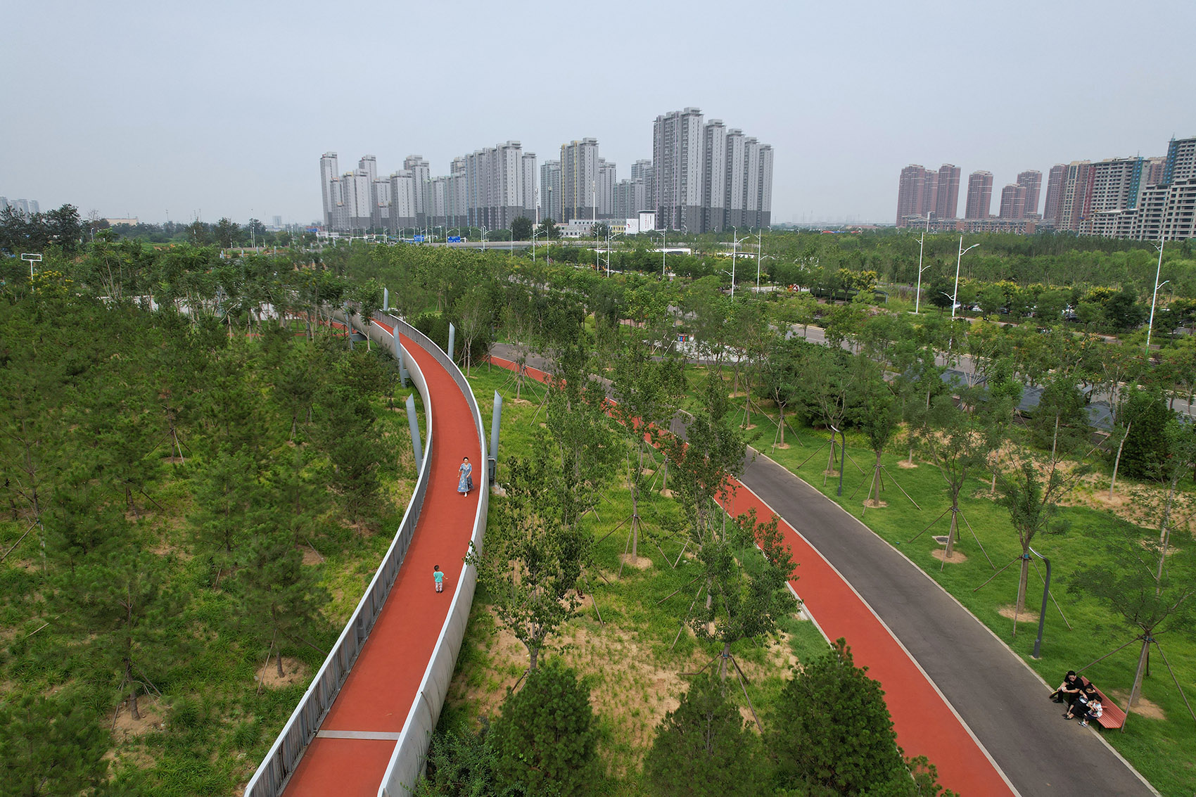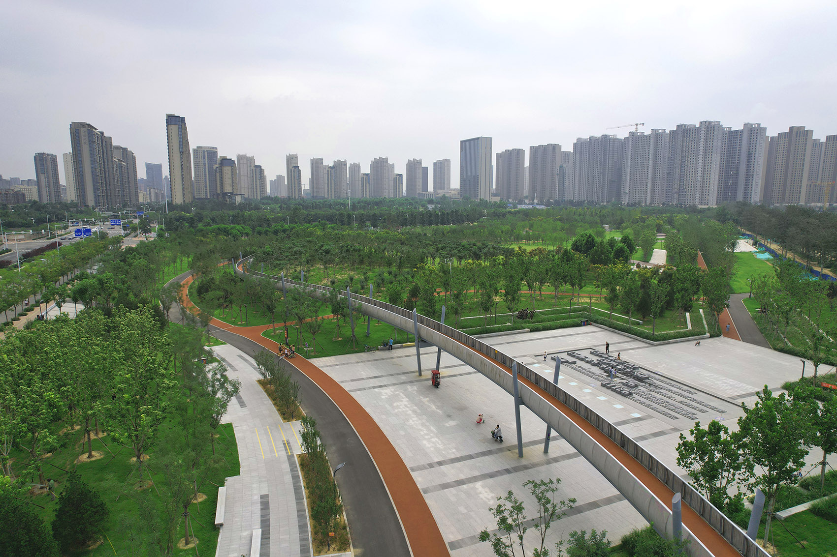 唐山人民公園項目位于唐山市中心城區(qū)西北部,是西北片區(qū)唯一大型綜合公園?,F(xiàn)狀基址呈西北至東南排布,被城市道路分隔為四個地塊,總面積40.4公頃。一方面,公園周邊遍布居住社區(qū),成為與周邊居民互動緊密的城市綠色空間;另一方面,公園場地基址為曾在抗震時期發(fā)揮重要作用的唐山軍用機(jī)場,充分繼承場地文脈,也是公園需具備的重要公共屬性。設(shè)計以“編織城市文化,觸媒幸福生活”為理念,挖掘展示機(jī)場抗震歷史,創(chuàng)造親民活動空間,提供多元的文化活動場所。