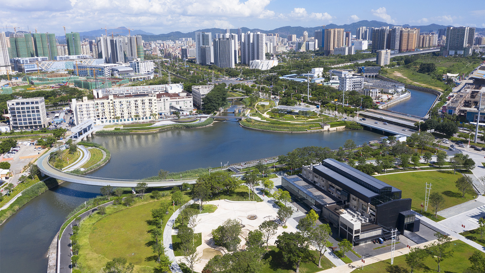 蠔鄉(xiāng)湖公園位于深圳市寶安區(qū),地處排澇河、新橋河、萬豐河、潭頭河四條河流交匯處,總占地面積13.1公頃,總投資約2.83億元。正和恒基作為設(shè)計統(tǒng)籌單位,以基于自然的解決方案和共生城市理念為指導(dǎo),將海綿設(shè)施與濱水景觀有機結(jié)合,將沙井蠔文化融入公共空間營建,實現(xiàn)水質(zhì)提升、雨洪調(diào)蓄、生態(tài)重塑的同時,引入綠色創(chuàng)新型產(chǎn)業(yè)空間。項目建設(shè)內(nèi)容包括園林綠化、園建工程、燈光工程、標識工程、水電安裝工程、跨河人行景觀橋工程、公園配套服務(wù)設(shè)施、智慧公園、和周邊建筑及市政道路提升。