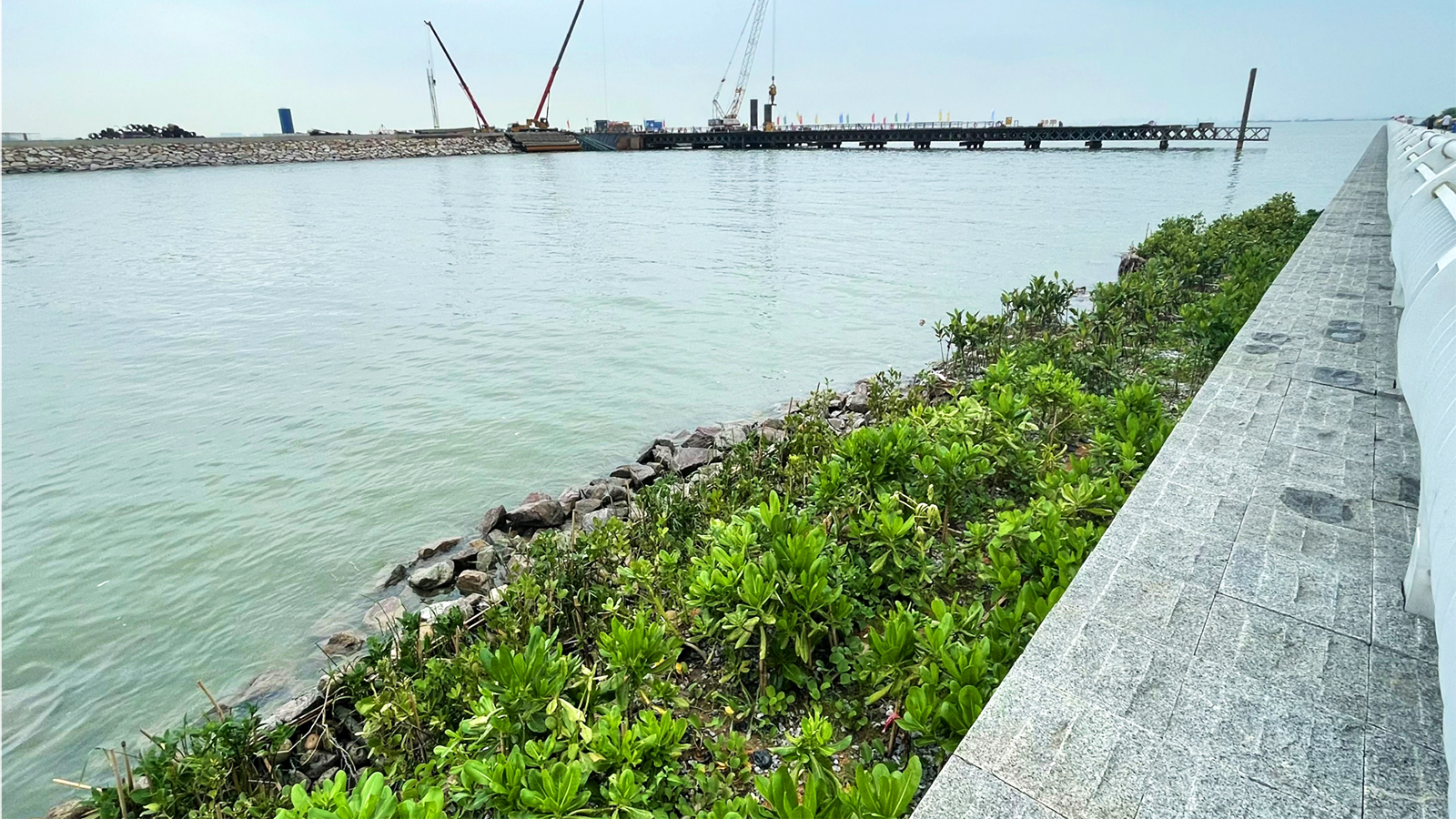 正和生態(tài)根據(jù)對(duì)珠江口海岸環(huán)境條件和紅樹(shù)林修復(fù)中存在的問(wèn)題,以基于自然的解決方案(NbS)設(shè)計(jì)理念為指引,結(jié)合場(chǎng)地潮位變化,采用“裝配式海岸植物生態(tài)模塊及組裝技術(shù)”,探索海岸修復(fù)新模式,目前該技術(shù)在東莞濱海灣新區(qū)硬質(zhì)海堤生態(tài)化改造示范段首獲成功,將人工海堤修復(fù)成連續(xù)生態(tài)系統(tǒng),激發(fā)海岸活力。該項(xiàng)技術(shù)和主要工藝已經(jīng)申請(qǐng)國(guó)家專利。