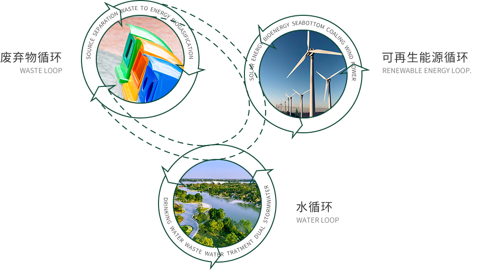 可持續(xù)發(fā)展的一個(gè)重要內(nèi)容是生態(tài)循環(huán)模式。生態(tài)循環(huán)模式對(duì)綜合處理能源、垃圾、廢水和材料提出建議。生態(tài)循環(huán)的主要挑戰(zhàn)是減少溫室氣體的排放,以可持續(xù)發(fā)展的方式管理淡水,并將水、能源和廢物聯(lián)系起來(lái),提高再循環(huán)和回收利用,并在工業(yè)、農(nóng)業(yè)和城市地區(qū)之間形成大循環(huán)。