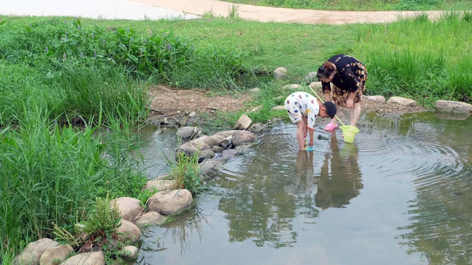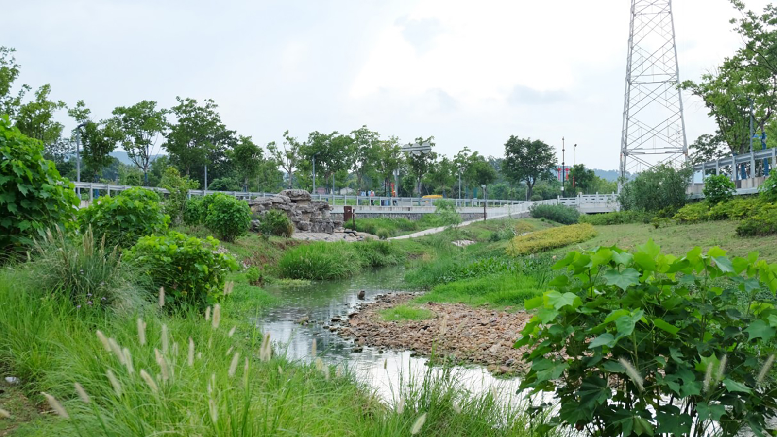 The design embraces the flood discharge demand of the channel and the seasonal changing of hydrological characteristics with the main channel + shallow creek section design. The main channel works as a resilient space for flood discharge to ensure water safety in extreme weather, while the shallow creek replicates the diverse flow patterns which are characteristic of natural river systems. Another challenge for the site is the periodic fresh water flush to the green slope. The design combined the bioengineering techniques with the typical engineering technologies which the plants have an important structural role in soil reinforcement on the water land boundary and the floodplain using no large machinery and concrete, through the mechanical characteristics of three-dimensional geocell and the simultaneous application of pile and pebble. The undulating green space along the river gently integrates to the meandering stream after the redevelopment, increasing the floodwater conveyance capacity and creating transitional water and green space. The success of water clean was attributed to the pollution control and interception project and the rich and diverse aquatic plants along the banks. The water storage relied on the multi-level water circulation scheme tailored for this project. Nature-based Solutions were involved to improve the fluidity of water and restore the ecological base of the river, increasing the resiliency of the site with self-remediation capacity.