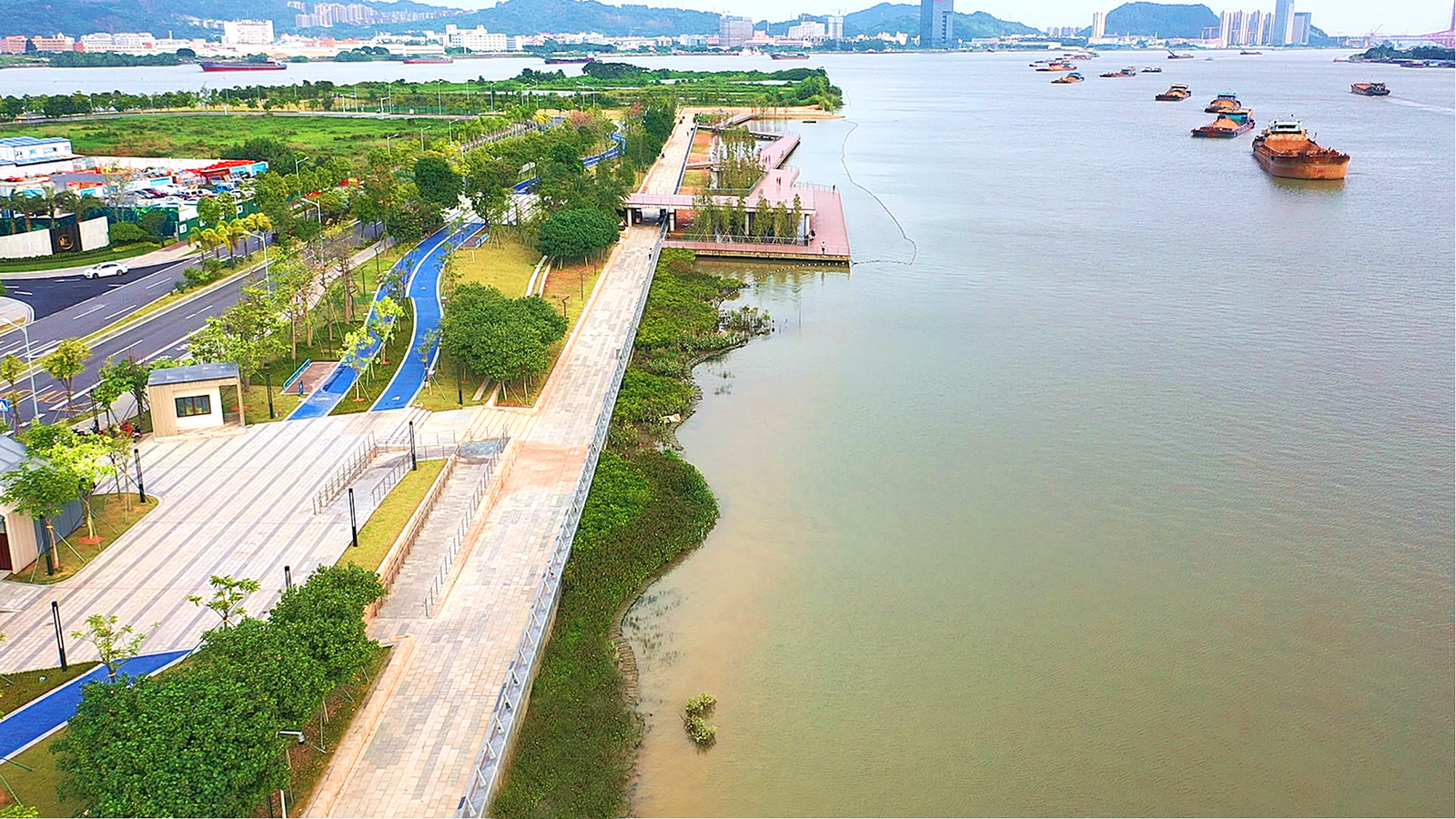 In recent years, Nansha District of Guangzhou City has witnessed high-quality development of ocean economy and continuous gathering of marine industries. Based on the concept of “Ecological Belt” proposed by Guangdong Province, Nansha District, as the core area for development of Guangzhou City, set the Jiangmen Waterway on the west and north side of Lingshan Island and the Shanghengli Waterway on the south side as pilot projects for the “Ecological Belt”.