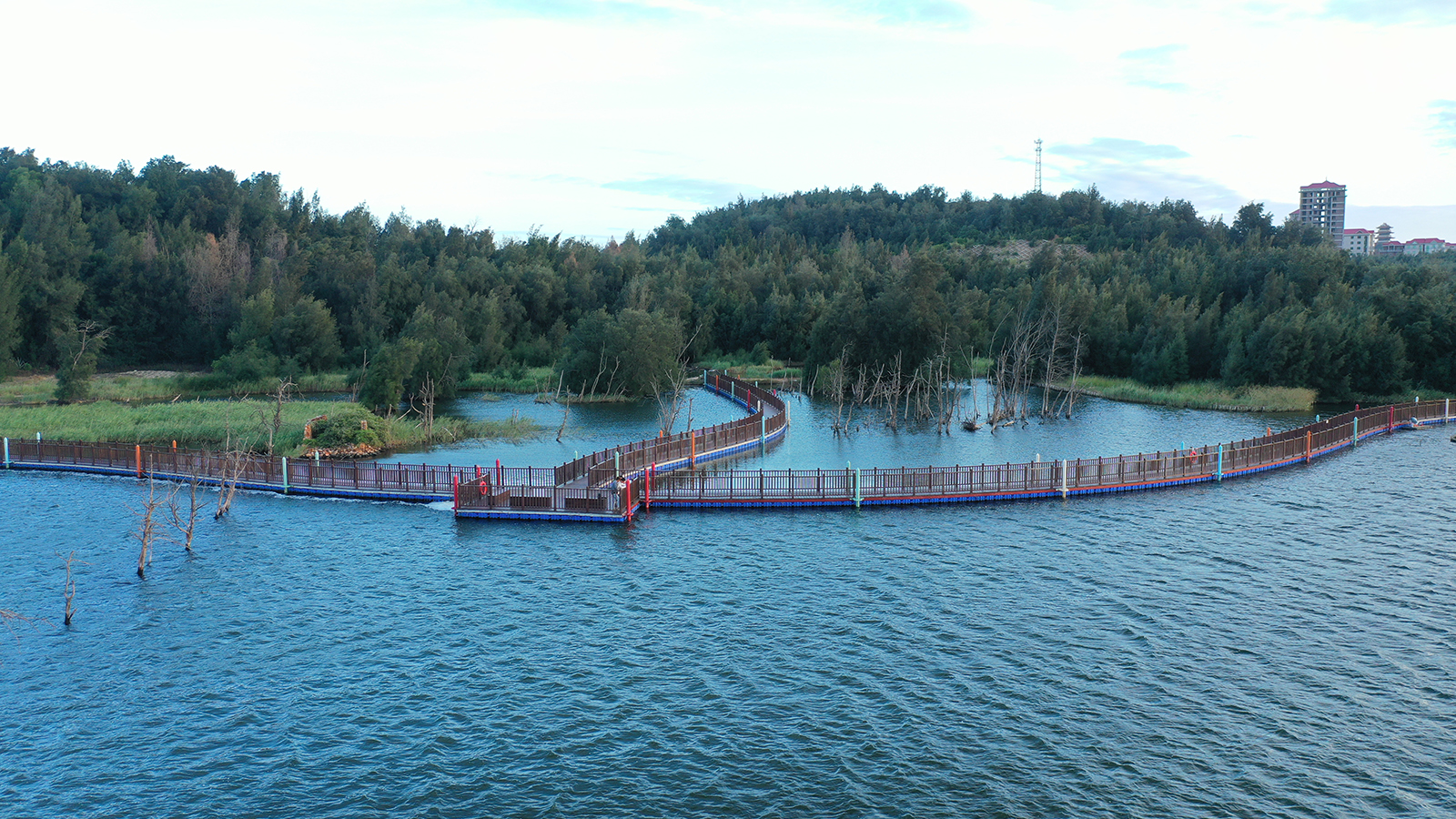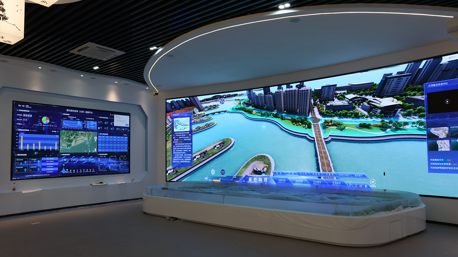 Data visualization: Panoramic display of important hydrological and water quality indicators such as waves, wind, and water temperature of the Blue Bay (north shore), promotion of Mazu culture, the ecological engineering methods of the Daai Lake wetland, real-time date of tidal curves, monitoring data of biological specimens, etc.