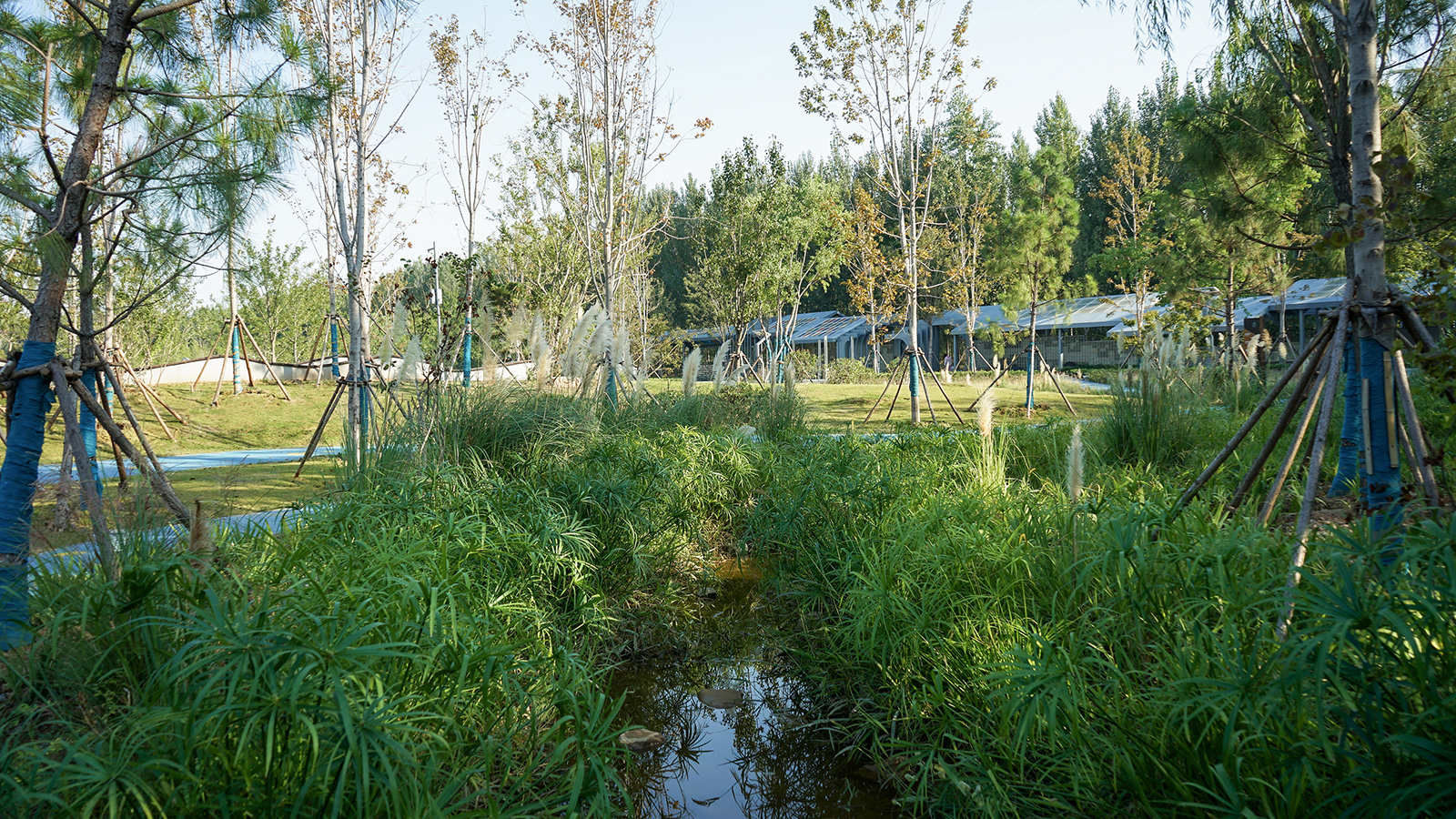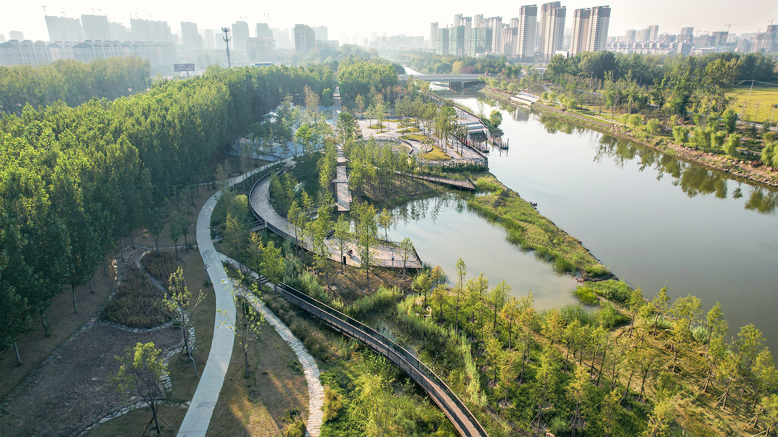 The ecological security buffer zone of the Fengpei Canal starts from the East Ring Road in the west and ends at the Subeidi River in the north of Jiangsu Province in the east, with a length of 2.9 kilometers and an area of 51.6 hectares. Through vertical natural infiltration and horizontal blue green suture, a diversified and composite ecological corridor is constructed. It mainly includes four-dimensional ecological buffer zones, functional wetland purification, habitat community construction, supporting facilities, intelligent interaction, cultural construction and other projects.