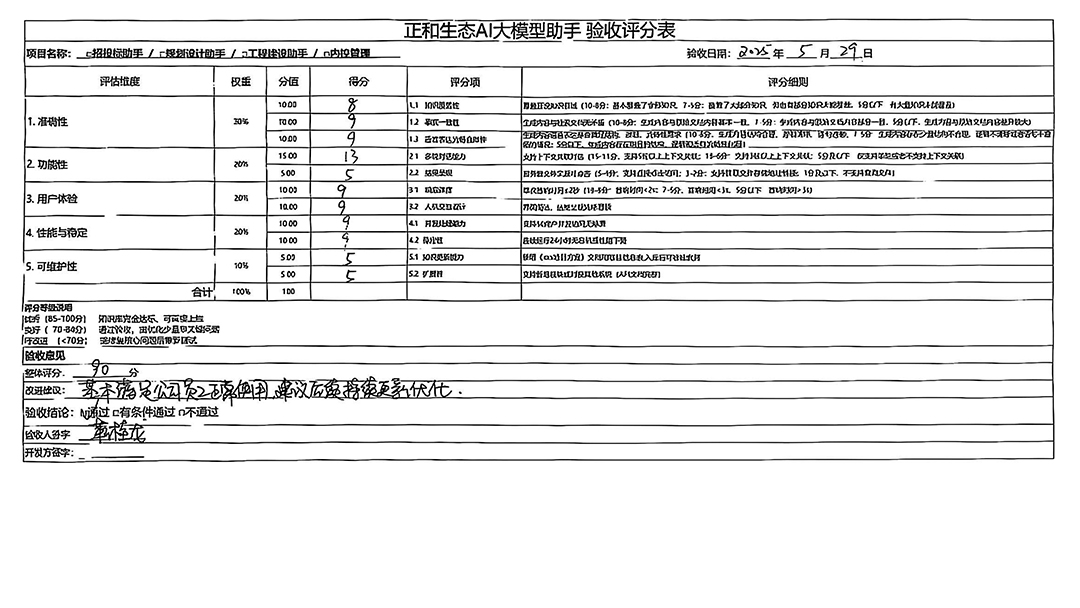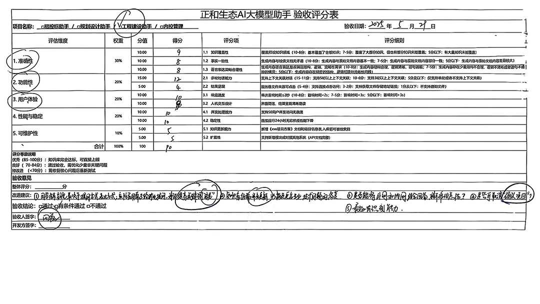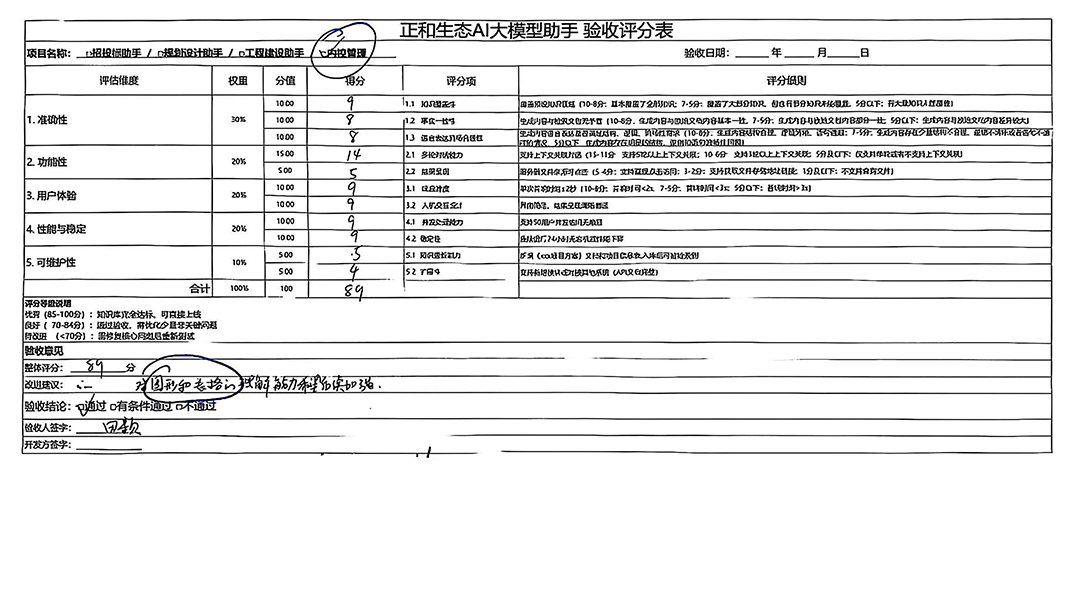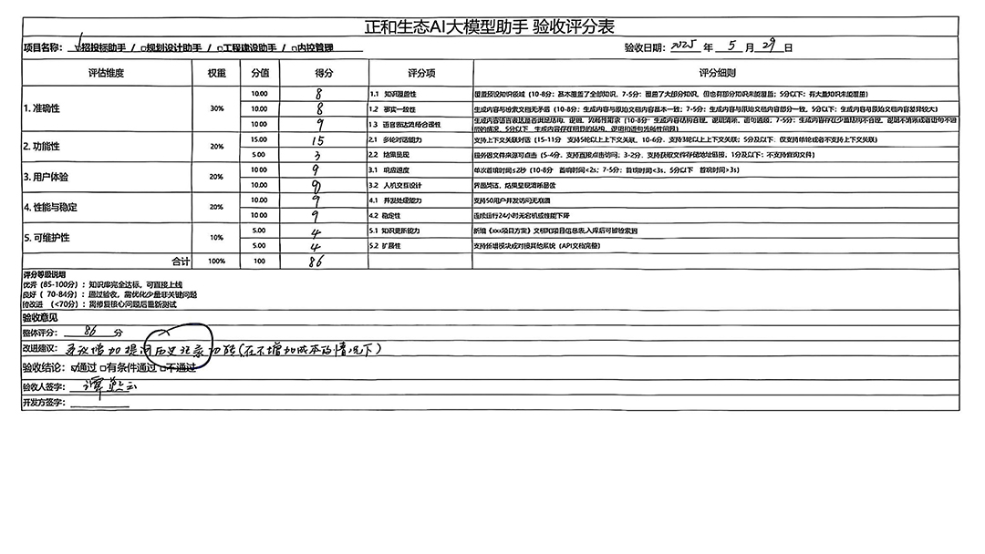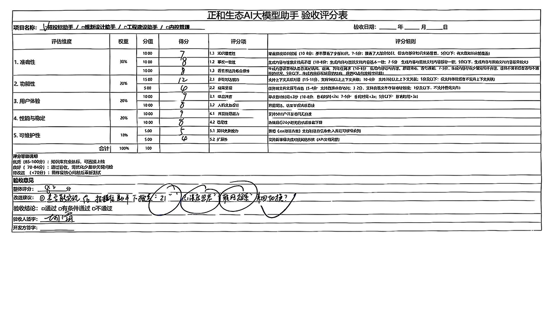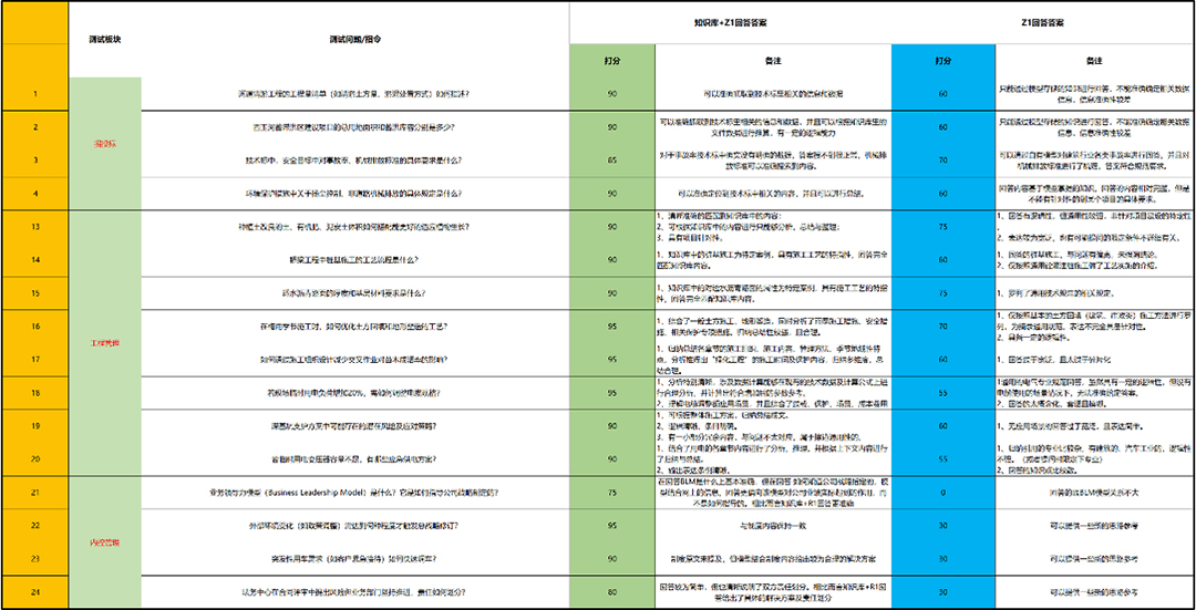 To ensure the professionalism and comprehensiveness of acceptance results, the company formed an acceptance group of 21 core members, including business leaders and IT experts. Using a rigorous 100-point scoring method combined with specific scenario requirements, they scored the Z1+ Knowledge Base and Z1 separately, ensuring objective, quantifiable results.