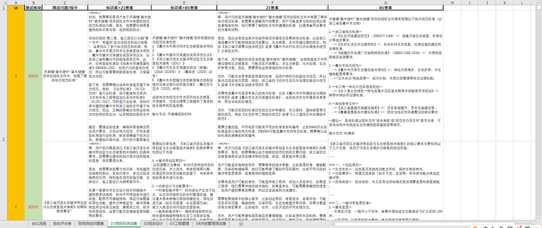 The ecological restoration industry is broad, encompassing ecological protection and restoration, watershed (river) management, coastal zone protection and restoration, ecological landscapes, and more. Each area involves vast amounts of technology, case studies, and policies/regulations. To build a comprehensive and rich knowledge base, we invested significant effort. Currently, the knowledge base includes 439 company-owned tendering/bidding entries, 519 planning & design entries, 161 engineering construction entries, 74 internal control management entries, and over 500 industry standards, totaling more than 10,000 organized project documents.