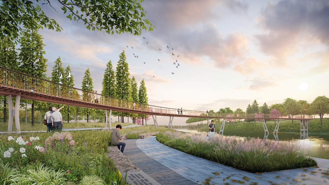 Shuize Garden: in the Shuize Park, based on the Ecological Logic of “suture growth”, we integrate the natural elements of the site and skillfully use the changes of water level to create a multi-category habitat for flowers, birds, fish and insects; The multi-level habitat space and community type were constructed by four-dimensional waterfront ecological buffer zone, waterfront ecological construction method system and aquatic plants with different water depth adaptability; While ensuring the material and energy circulation between land and water and the stability of water quality, it will create a home for all kinds of target organisms to forage, inhabit and grow.