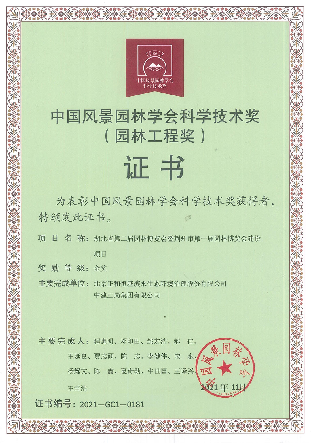 Recently, the Chinese society of landscape architecture announced the winners of 2021 Science and Technology Awards. The construction project of the Second Garden Expo of Hubei Province First Garden Expo of Jingzhou undertaken by ZEHO ECO stood out from many projects and won the gold medal of 2021 China Landscape Architecture Society Science and Technology Award.