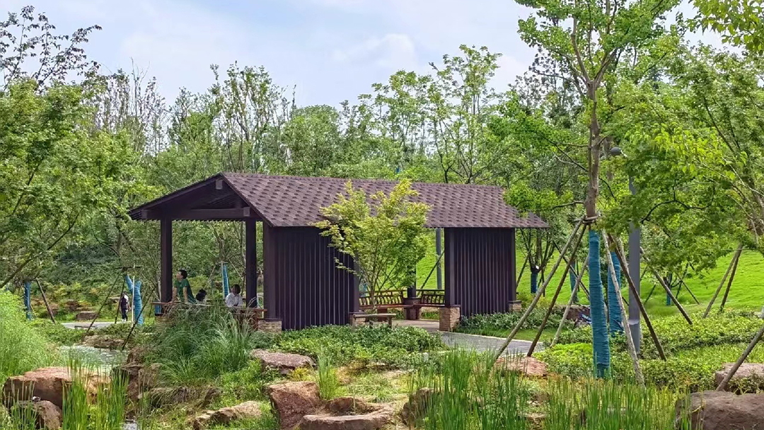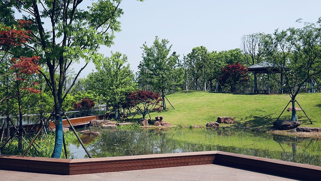 Before construction, the site of Chishan Park mainly includes demolition site, Hongyan mountain, pond, road and a small amount of vegetation. The project adapts measures to local conditions, preserves the original hilly landform features and original plant communities to the maximum extent, connects the pond water system based on the original landscape skeleton, scientifically mixes peat soil and organic fertilizer to improve sandstone red soil, builds micro terrain and Red Rock mountainous landscape according to the mountain situation, and reduces carbon emissions during construction by minimizing disturbance. And build subtropical ecological plant communities, repair damaged ecosystems, enrich plant seasonal colors, and also play a multi-level and high-efficiency carbon sequestration effect. The water bank restoration also respects nature, and uses low-carbon natural materials such as plants, logs, gravels and stones, and selects four ecological engineering methods such as natural vegetation revetment and Gabion revetment to carry out natural revetment restoration; Meanwhile, the garden road is paved with permeable materials, further implementing the concept of sponge city.