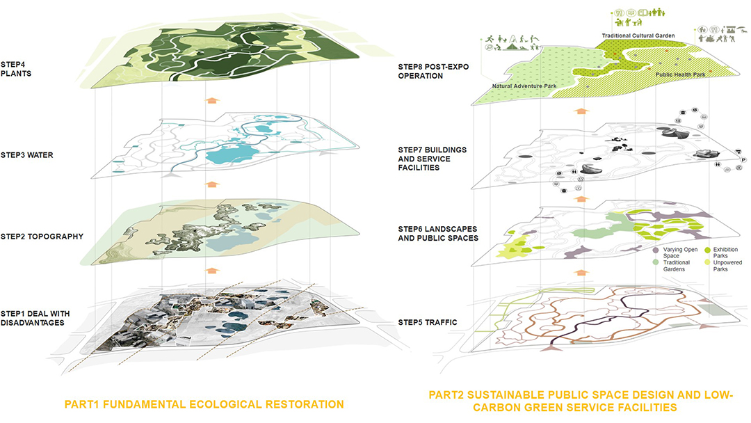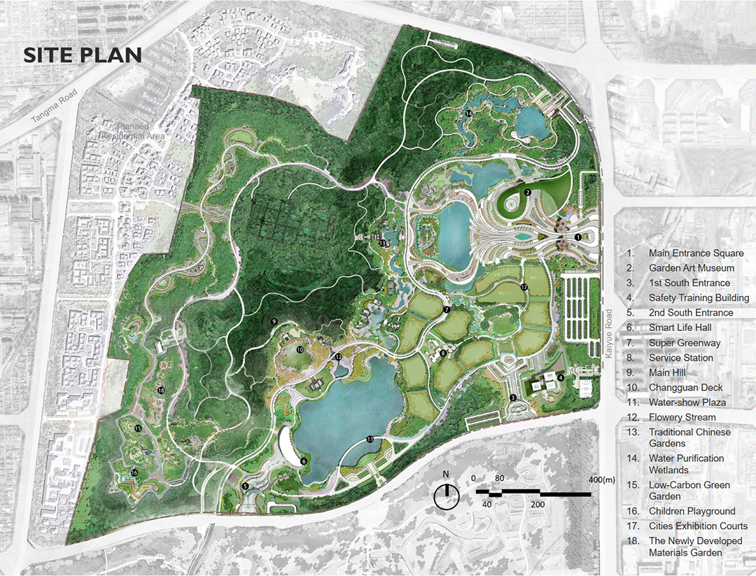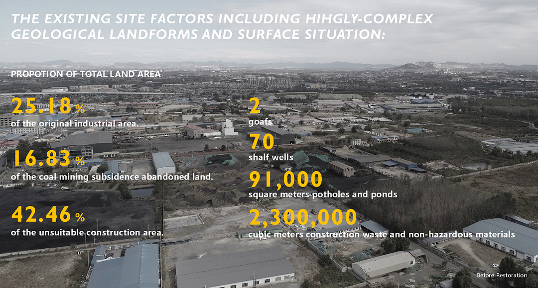 Tangshan Garden Expo is a 2.18 km2 urban park in the well-known industrial town of China —— Kaiping District, Tangshan City in Hebei. It was formerly an urban brownfield with industrial and construction waste piled high, and subsidence ponds formed by coal mining scattered. This is a significant planning and design project for transforming the wasteland to an urban oasis which is ecological resilient, sustainable and low-carbon.