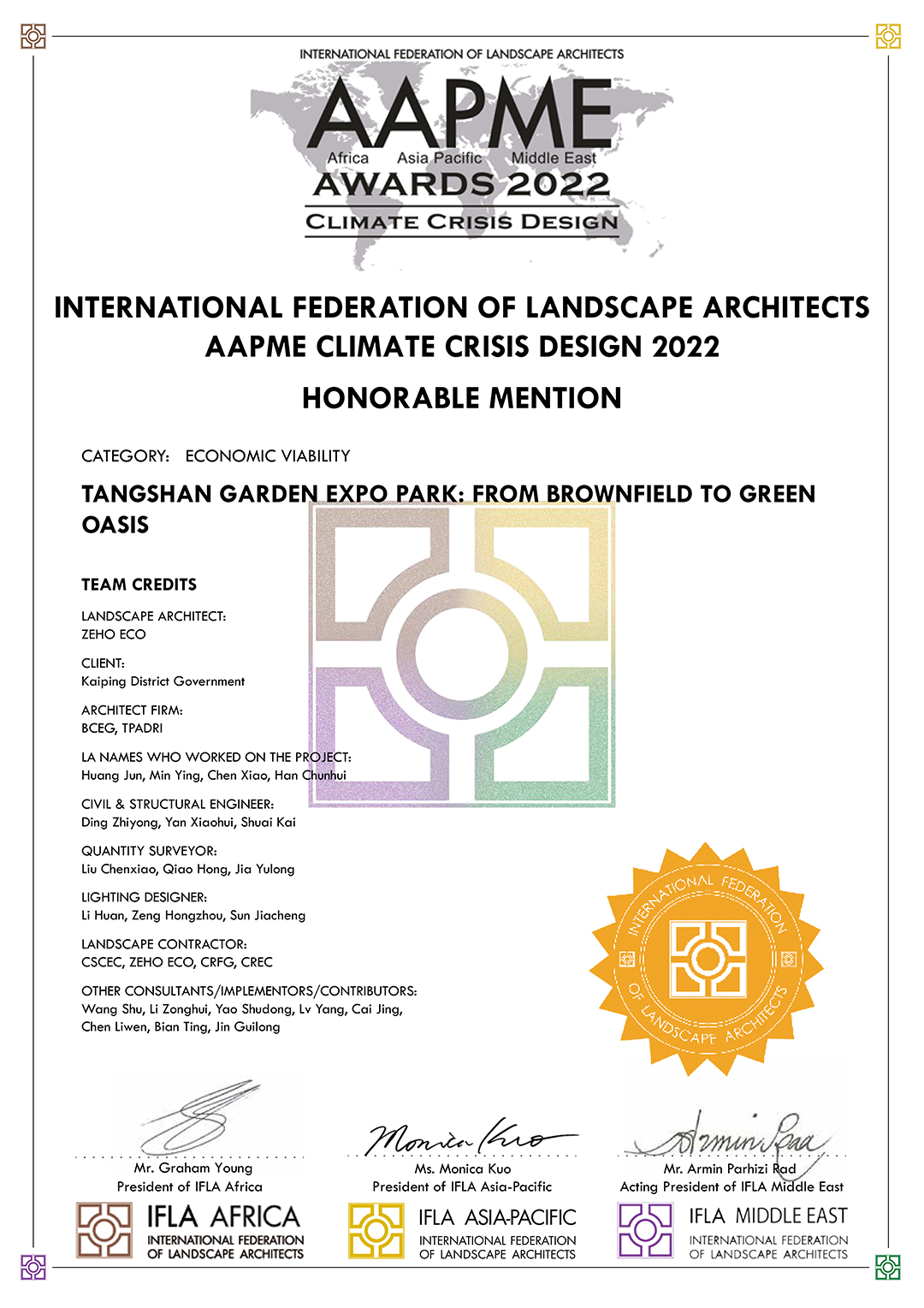 On Aug 30, the International Federation of Landscape Architects announced the winners of the IFLA AAPME Awards 2022 - “CLIMATE CRISIS DESIGN”. This year's Awards received a total of 318 submissions, with 204 being awarded across 10 categories.