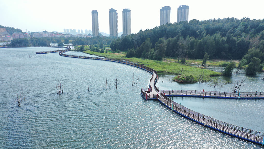 Through the construction and transformation of ecological engineering method, Putian Blue Bay has achieved the consolidation and upgrading of sea wall, ecological restoration and improvement, and landscape reconstruction and sharing. After the renovation of Mazu City seawall, the wave protection standard has been raised to once in 50 years. Before 2020, the Ziyu Lake Wetland is still a messy depression, with weeds, garbage dumping, and surrounding people building fences; After transformation, this wetland, which is only a few hundred meters away from the sea, has become a coastal ecological park where people and nature coexist harmoniously. It has played a role in stabilizing the coastline and restoring the intertidal habitat. With the improvement of the surrounding water environment and vegetation environment, many fish and birds also inhabit here. Today, Neiwan Plot is covered with green plants, with a repaired ecological area of 22 hectares, and a fitness trail, which has become a new online red card punching place in the local area.