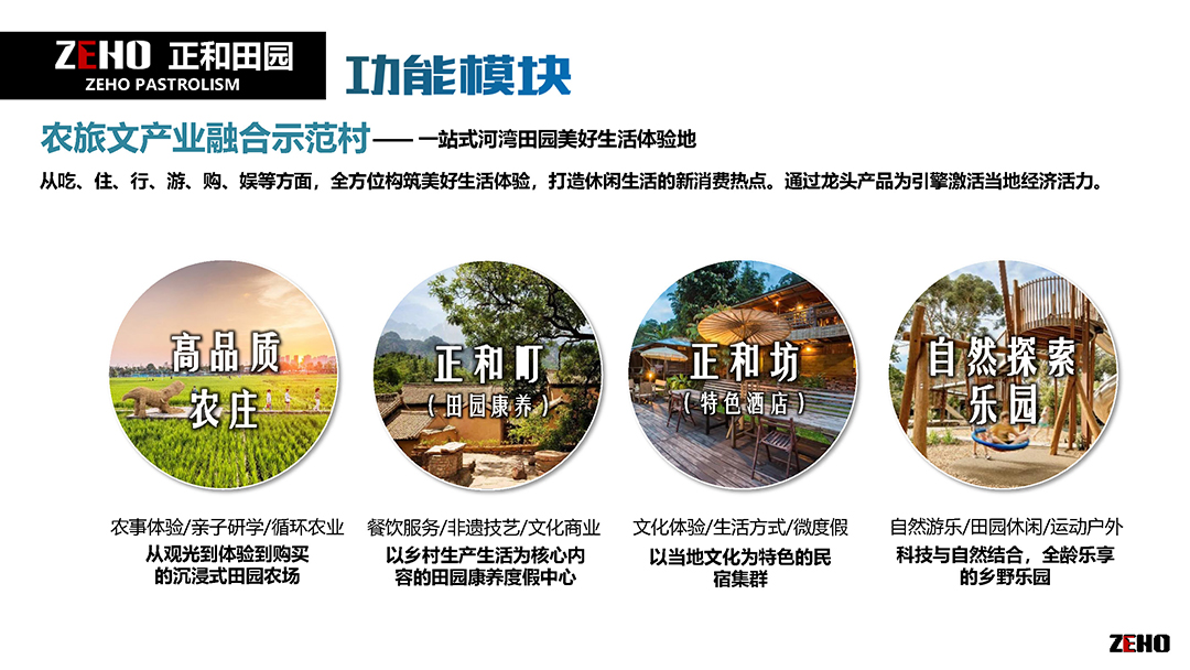 Centering on the transformation and upgrading of urban and rural low-carbon, “ZEHO Pastrolism” focuses on building a rural low-carbon leisure tourism system, providing urban residents with an idyllic life experience place for weekend and suburban micro holidays, and providing local governments with comprehensive implementation solutions for rural revitalization with cultural and tourism benchmarking projects.