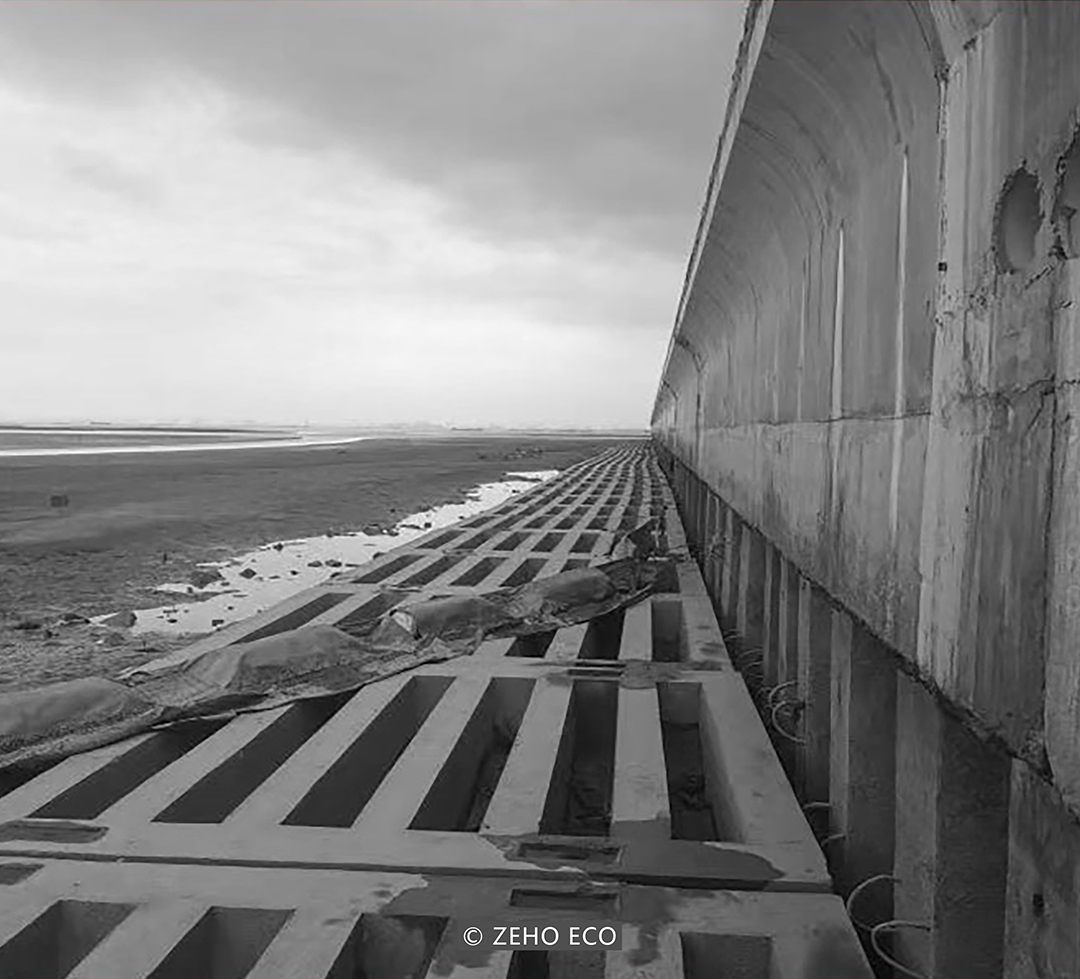 Considering the aforementioned challenges, ZEHO ECO has adopted Ecological engineering technology, rooted in the NbS concept, to revitalize the coastal zone's ecological foundation. This approach ensures the preservation of moisture-proof and flood control functions while maintaining the required level of physical protection. By combining manual repairs with natural engineering methods, the project achieves the naturalization, ecological enhancement, and aesthetic improvement of the shoreline. These efforts aim to enhance the seawall's climate adaptability while preserving its vital functions.