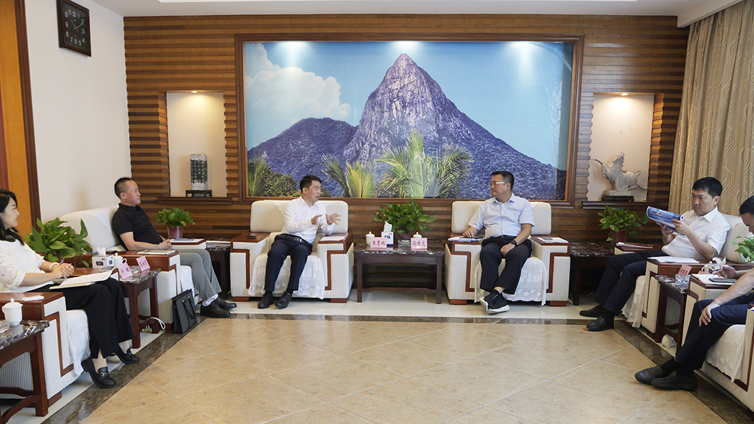 On the morning of September 7th, Sun Shiwen, Secretary of the Ledong County Party Committee, met with Zhang Huipeng, Vice Chairman and CEO of ZEHO ECO, and his delegation in the living room on the first floor of the Ledong County Party Committee Guesthouse.