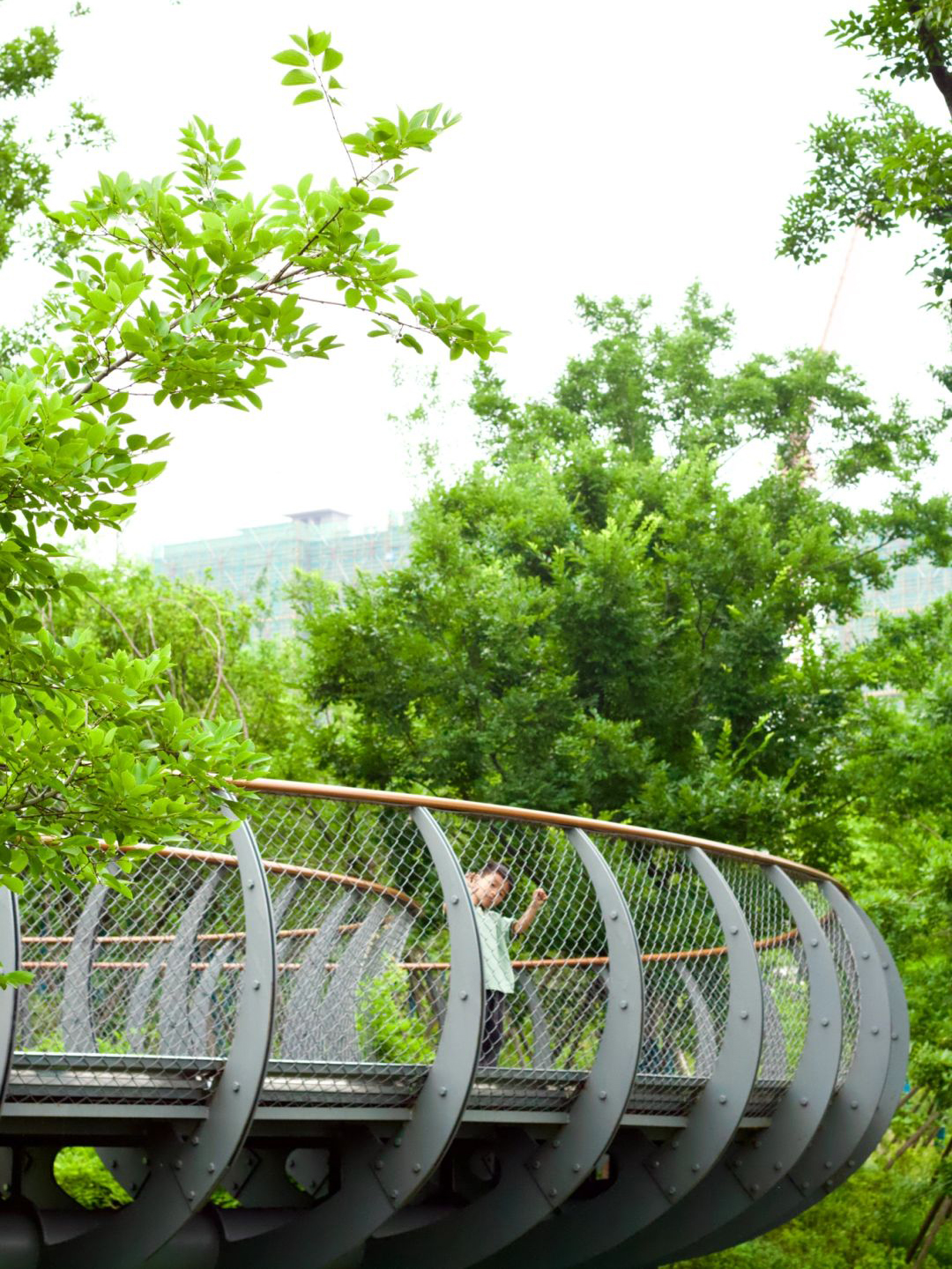 Simultaneously, by blending the park's natural setting with the Asian Games theme, ZEHO ECO has introduced a 1,800-meter National Health Smart Track. This innovative track allows runners to record their pace, distance, and duration by simply brushing their face at designated stations along the route. To enhance the overall recreational experience, outdoor facilities like a children's fun track, interactive wisdom tree, and pedestrian light interactive track have been incorporated, elevating the enjoyment of sports and leisure for the community. Moreover, the park features advanced technologies such as AI (Artificial Intelligence), 5G networks, AR (Augmented Reality) navigation, and intelligent service robots. These additions have collectively established the park as a pioneering model, fusing the themes of "smart+ecology+sports." Chishan Park has thus become a prominent showcase for urban ecological concepts, urban culture, and digital advancements.