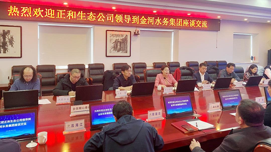 Zhou Jianzhong, Secretary of the Party Committee of Golden River Water Group, Jia Jun, Chief Engineer, Lv Haijiang, Deputy General Manager, Wang Jianguo, and other leaders from the group were present. Representing ZEHO ECO, Zhang Huipeng, President, along with Vice Presidents Huang Jun, Li Baojun, Xu Shan, and Xing Lei, attended the meeting. Also in attendance were Hu Yongchao, General Manager of the Investment and Development Center, Li Zonghui, Vice President of Ecological Environment, Wang Yanliang, General Manager of the Engineering Management Center, Kong Linghua, Executive Director of the Design Institute, Cai Jing, President of the Landscape Institute, and Lan Tianyao, Marketing Manager.