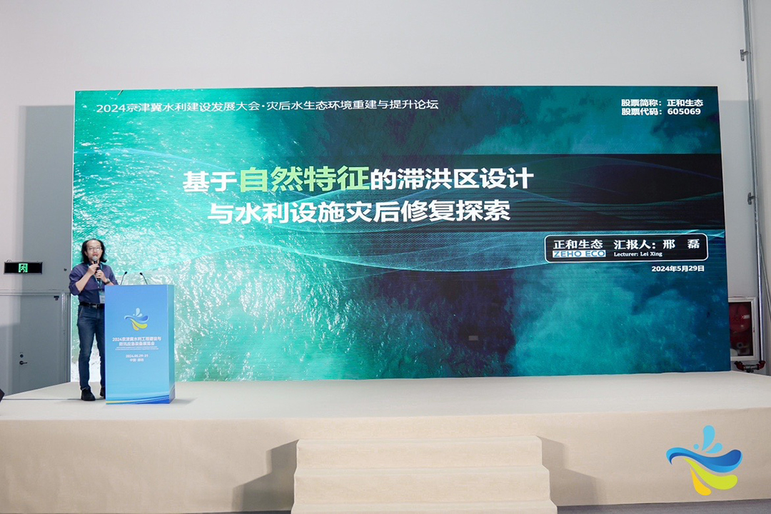 Water is essential for production and the foundation of ecology. However, with changing climatic conditions, urban water security issues are becoming increasingly prominent. To address flood control challenges and promote the coordinated development of water conservancy in the Beijing-Tianjin-Hebei region, the Beijing-Tianjin-Hebei Water Conservancy Development Conference was successfully held in Langfang, Hebei, on May 29. As a significant part of the conference, the Post-Disaster Water Ecological Environment Reconstruction and Improvement Forum was organized by Beijing Golden River Water Resources & Hydropower Construction Group Co., Ltd. and Handan Water Conservancy Project Office. As a co-organizer of the forum, ZEHO ECO's Vice President Xing Lei was invited to share insights on the "Design of Flood Retention Areas Based on Natural Characteristics and Post-Disaster Restoration of Water Conservancy Facilities."