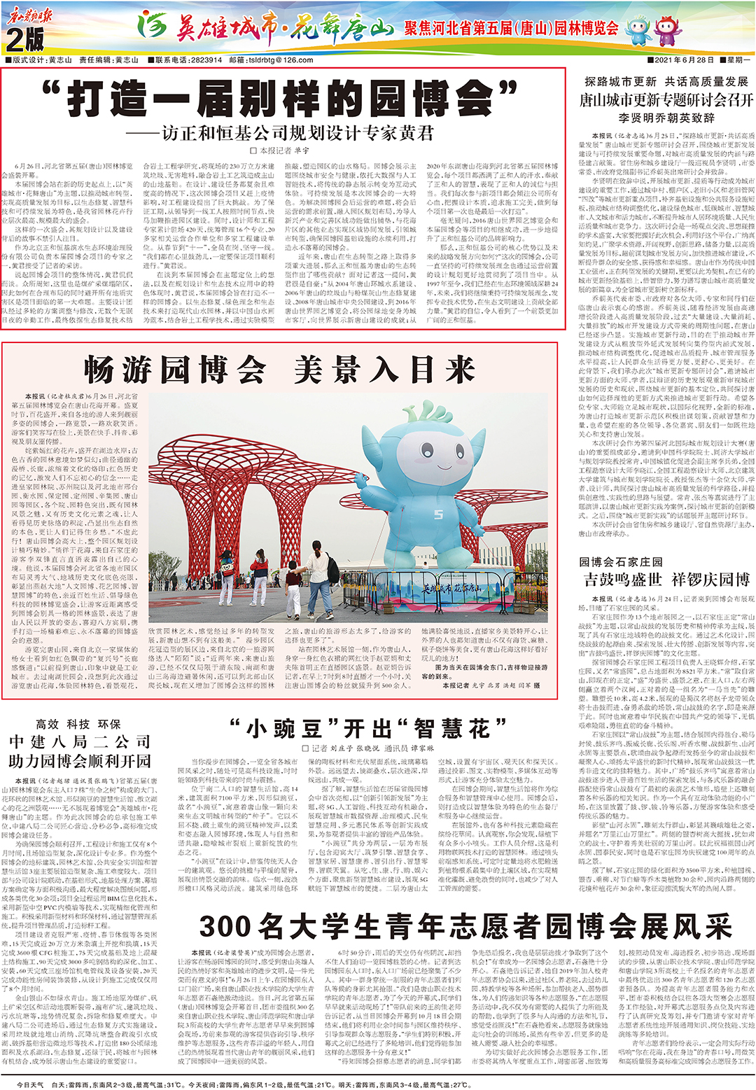 6月26日,河北省第五屆(唐山)園林博覽會(huì)盛裝開(kāi)幕。