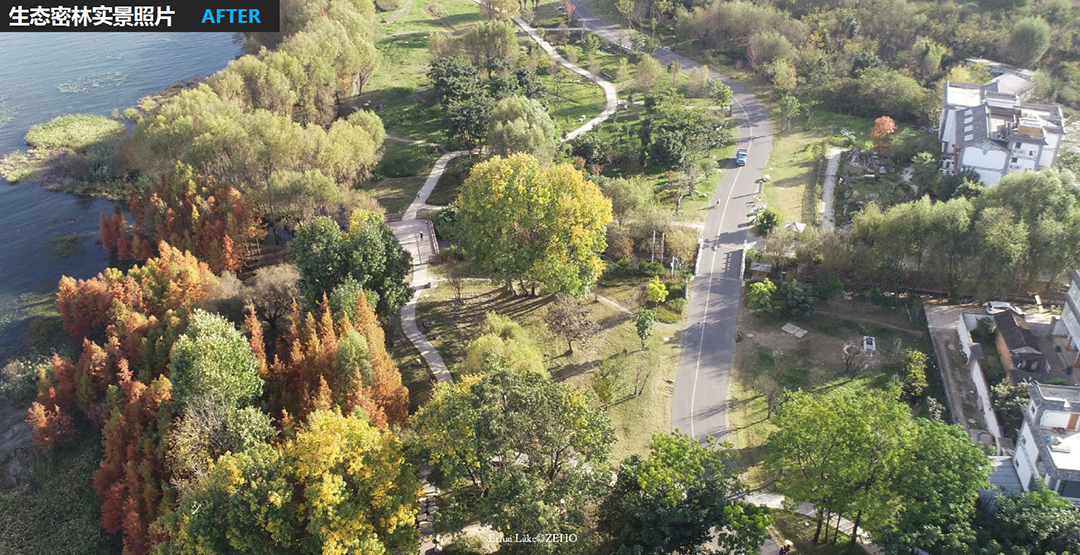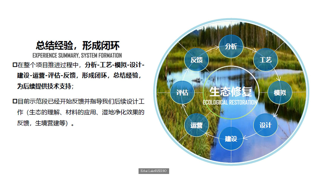 項目建成后一年后,湖濱帶的植物群落更為豐富,在此棲息的鳥類物種種類及規(guī)模都在擴大,作為水陸交錯帶的棲息地,其更豐富的物種和多度,補償了人進湖退造成的自然灘地的損失。基于自然的解決方案在這里由理念向實踐邁出了重要的一步,最終實現了“人退湖進”的人湖共生模式,并促生了“分析-工藝-模擬-設計-建設-運營-評估-反饋”的閉環(huán),為后續(xù)129km洱海湖濱緩沖帶生態(tài)修復工作提供了技術支持。