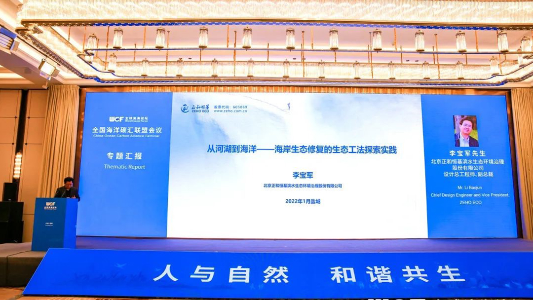 在其間召開(kāi)的全國(guó)海洋碳匯聯(lián)盟會(huì)議上,北京正和恒基濱水生態(tài)環(huán)境治理股份有限公司(以下簡(jiǎn)稱(chēng)正和生態(tài))副總裁李寶軍分享了該公司從河湖到海岸的生態(tài)工法探索實(shí)踐,以及利用新技術(shù)助力“雙碳”目標(biāo)實(shí)現(xiàn)的成功案例。
