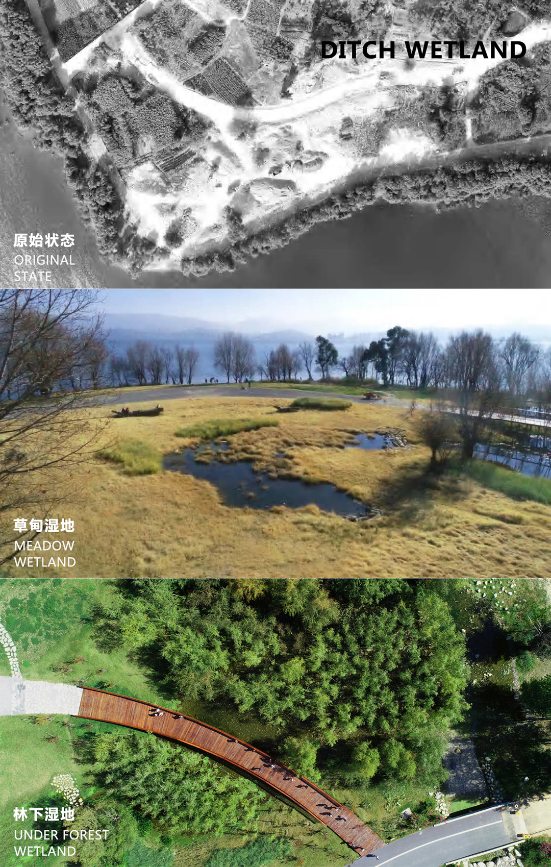 正和生態(tài)在項目開展之初即確立NbS作為設計理念與工作方法,選取生態(tài)空間格局、生態(tài)系統(tǒng)質(zhì)量、生態(tài)脅迫、社會參與四大項35個細分指標,構(gòu)建現(xiàn)狀評估診斷體系和修復目標框架;并從時間、空間兩個維度上,深入研究了洱海的歷史沿革,以及鶴慶草海、劍湖、拉市海、瀘沽湖等高原湖泊湖濱緩沖帶系統(tǒng),為洱海地區(qū)生態(tài)修復策略及措施提供理論支撐。