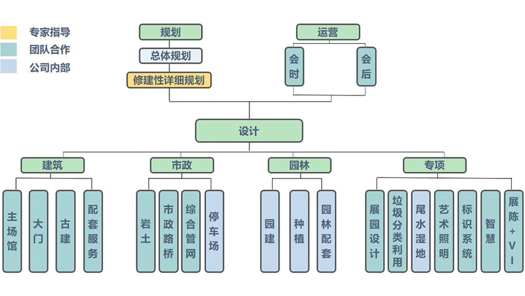 例如唐山園博園項目,涉及專業(yè)就包括四個大類,二十多個子專業(yè),由此產(chǎn)生的聯(lián)合體和分包單位自然數(shù)量眾多,要想在有限的時間內(nèi)保障項目質(zhì)量,管理上要做好“兩個統(tǒng)籌”。