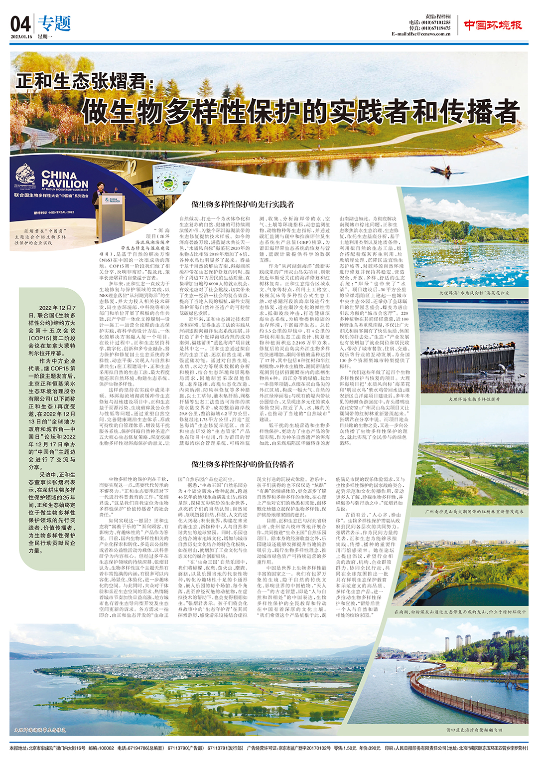 1月16日《中國環(huán)境報(bào)》刊登正和生態(tài)整版專題 ?中國環(huán)境報(bào)
